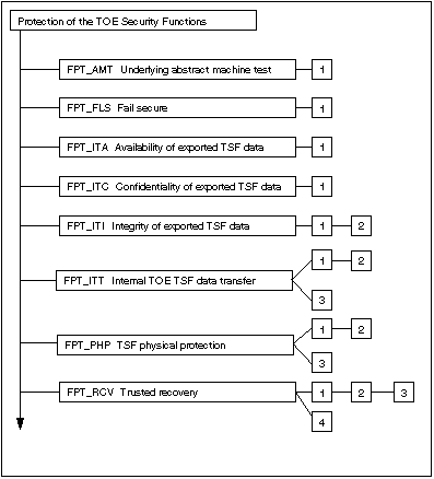 This class contains families of functional requirements that relate to the integrity and management of the mechanisms that provide the TSF (independent of TSP-specifics) and to the integrity of TSF data (independent of the specific contents of the TSP data). In some sense, families in this class may appear to duplicate components in the Class FDP User data protection (Class FDP User data protection) class; they may even be implemented using the same mechanisms. However, Class FDP User data protection focuses on user data protection, while Class FPT Protection of the TOE Security Functions focuses on TSF data protection. In fact, components from the Class FPT Protection of the TOE Security Functions class are necessary to provide requirements that the SFPs in the TOE cannot be tampered with or bypassed.