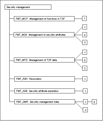 This class is intended to specify the management of several aspects of the TSF: security attributes, TSF data and functions. The different management roles and their interaction, such as separation of capability, can be specified.