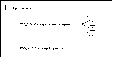 The FCS class is composed of two families: FCS_CKM Cryptographic key management and FCS_COP Cryptographic operation . The FCS_CKM family addresses the management aspects of cryptographic keys, while the FCS_COP family is concerned with the operational use of those cryptographic keys.